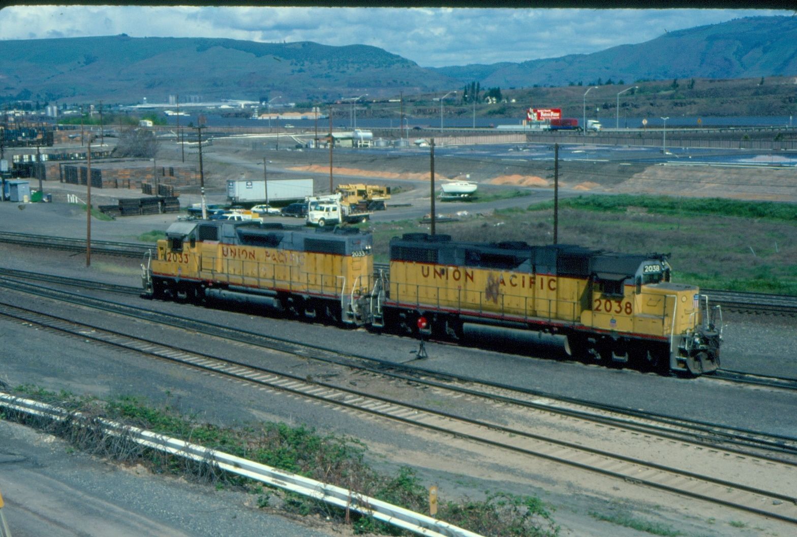 Title (ebay affiliate link): 35mm Orig Slide Union Pacific RR Locomotives #2038-2033 The Dalles Oregon 1996