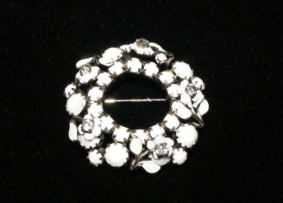 VINTAGE MILK GLASS RHINESTONE FLOWER BROOCH PIN WEISS