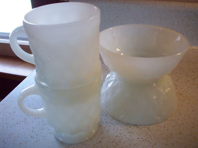 Anchor Fire King Kimberly White Milk Glass Mugs & Bowls