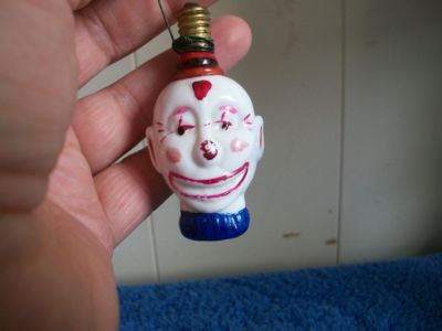 VINTAGE CHRISTMAS FIGURAL LIGHT BULB CLOWN ~ MILK GLASS