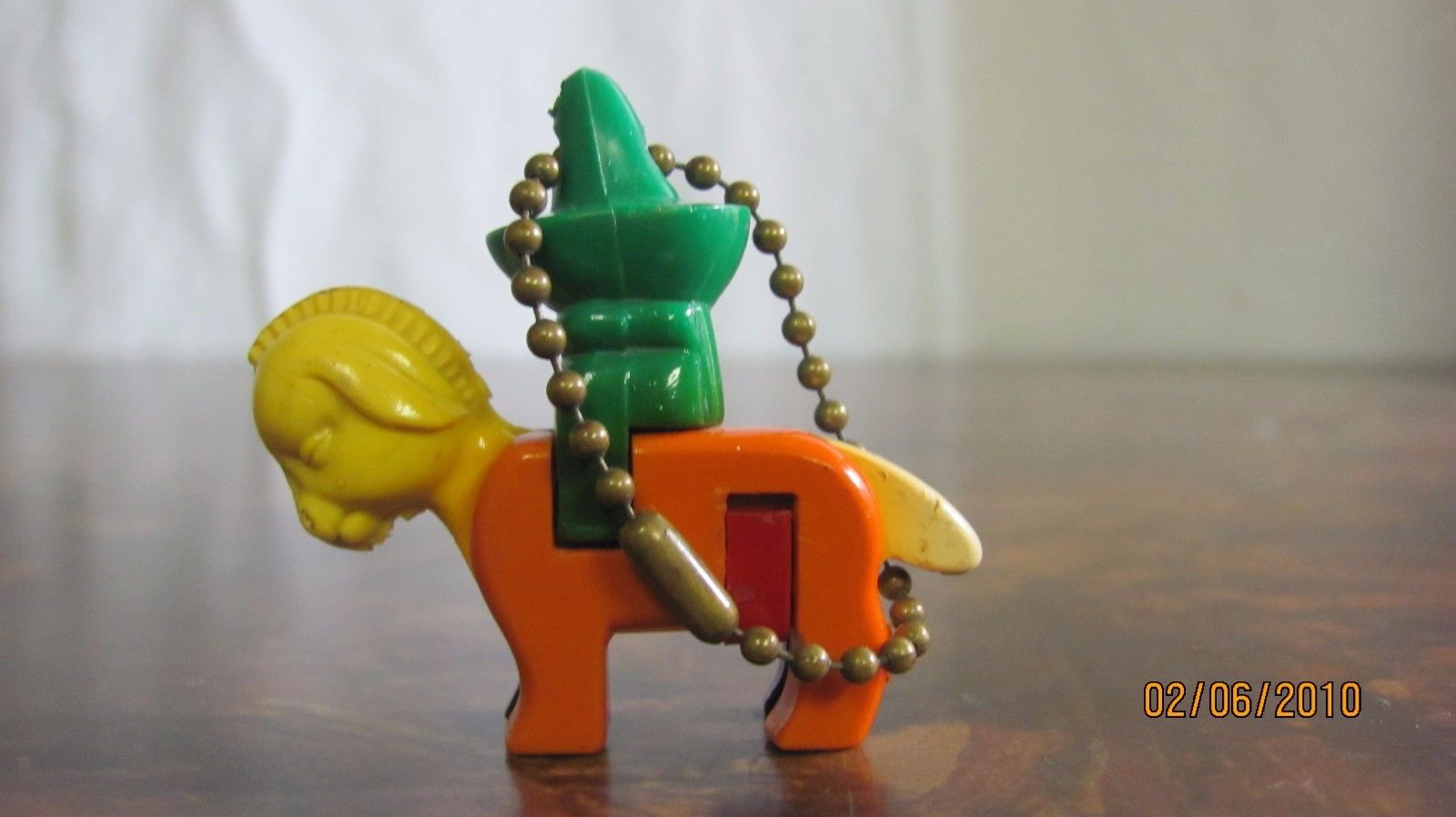 Title (ebay affiliate link): Vintage Lional Lido Plastic Toy Puzzle Keychain Donkey Mule Rider
