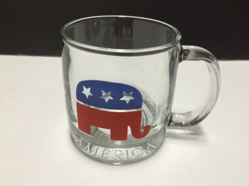 Title (ebay affiliate link): GOP Republican Elephant Mug Red White Blue Stars Clear Glass