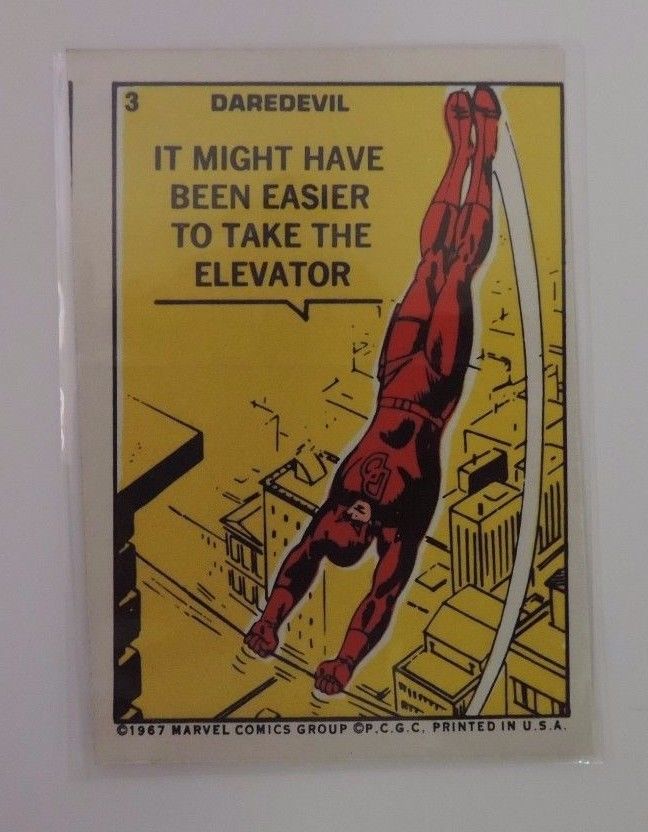 Title (ebay affiliate link): 1967 Philadelphia Gum Marvel Super Hero Stickers #3 Daredevil