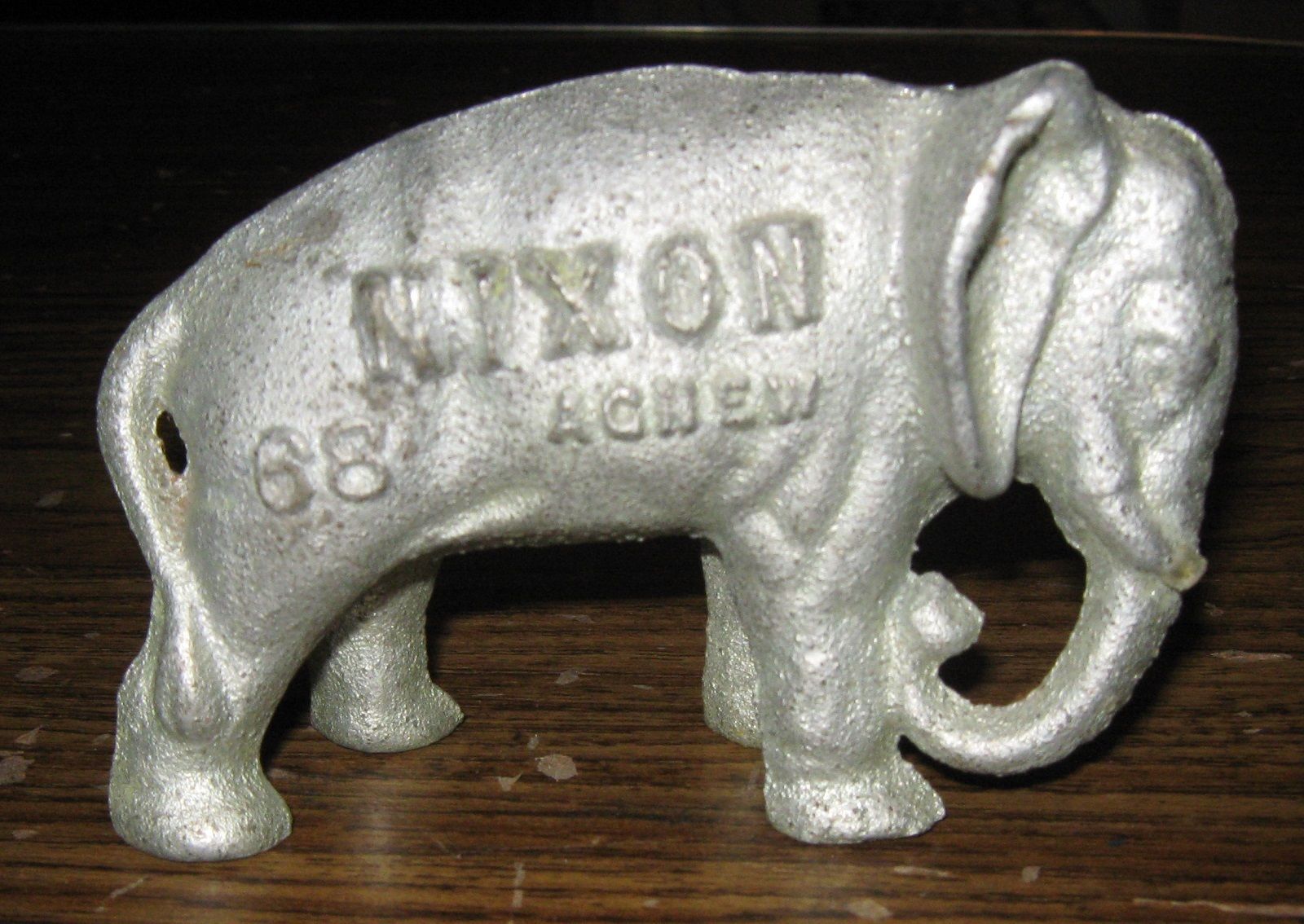 Title (ebay affiliate link): NIXON, AGNEW 1968 REPUBLICAN ELEPHANT CAST METAL BANK CAMPAIGN ITEM