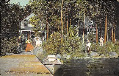 Title (ebay affiliate link): Gloversville New York~People Posing by Cottages @ Mountain Lake~Boat Dock~c1910