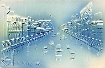 Title (ebay affiliate link): New York City~Bowery~Railroad Tracks Over Street~Trolley~c1910 Embossed Airbrush