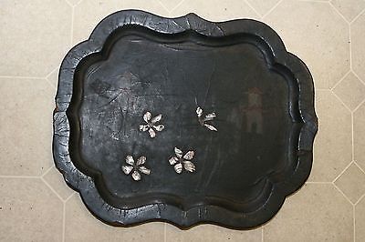 Antique Paper Mache Mother Of Pearl Insert Tole Style Tray