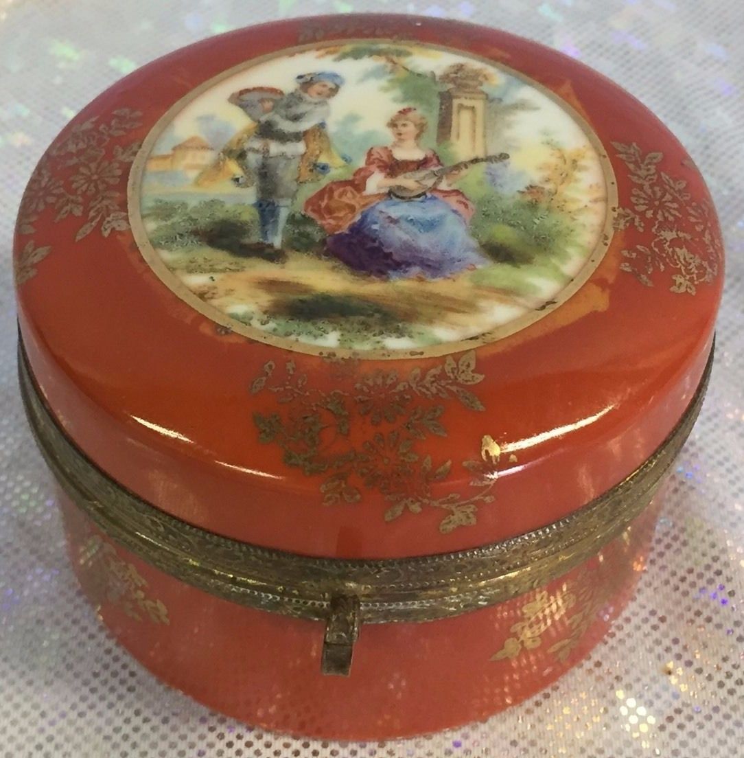 Title (ebay affiliate link): Antique Porcelain Powder Jar with inner vanity mirror marked Germany