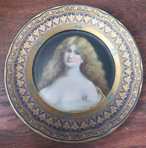 Title (ebay affiliate link): Antique 1905 VIENNA ART PLATE Nouveau Lady Maiden Tin Litho Portrait ~~ 9 1/2"