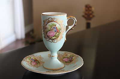 Vintage Blue Lefton Victorian Hand Painted Cup and Saucer