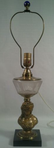 ANTIQUE VICTORIAN BRONZED METAL FIGURAL KEROSENE LAMP