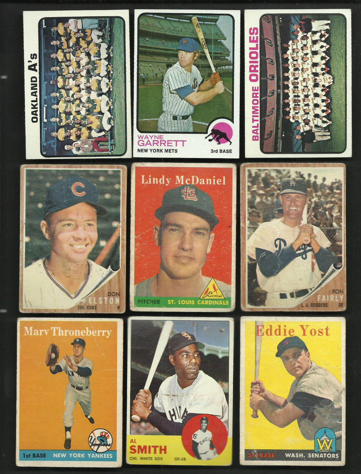 VINTAGE BASEBALL 9 card lot Assorted years and players (EDDIE YOST)