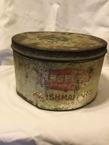 Title (ebay affiliate link): VINTAGE 1930's ANGELUS MARSHMALLOW TIN CRACKER JACK COMPANY