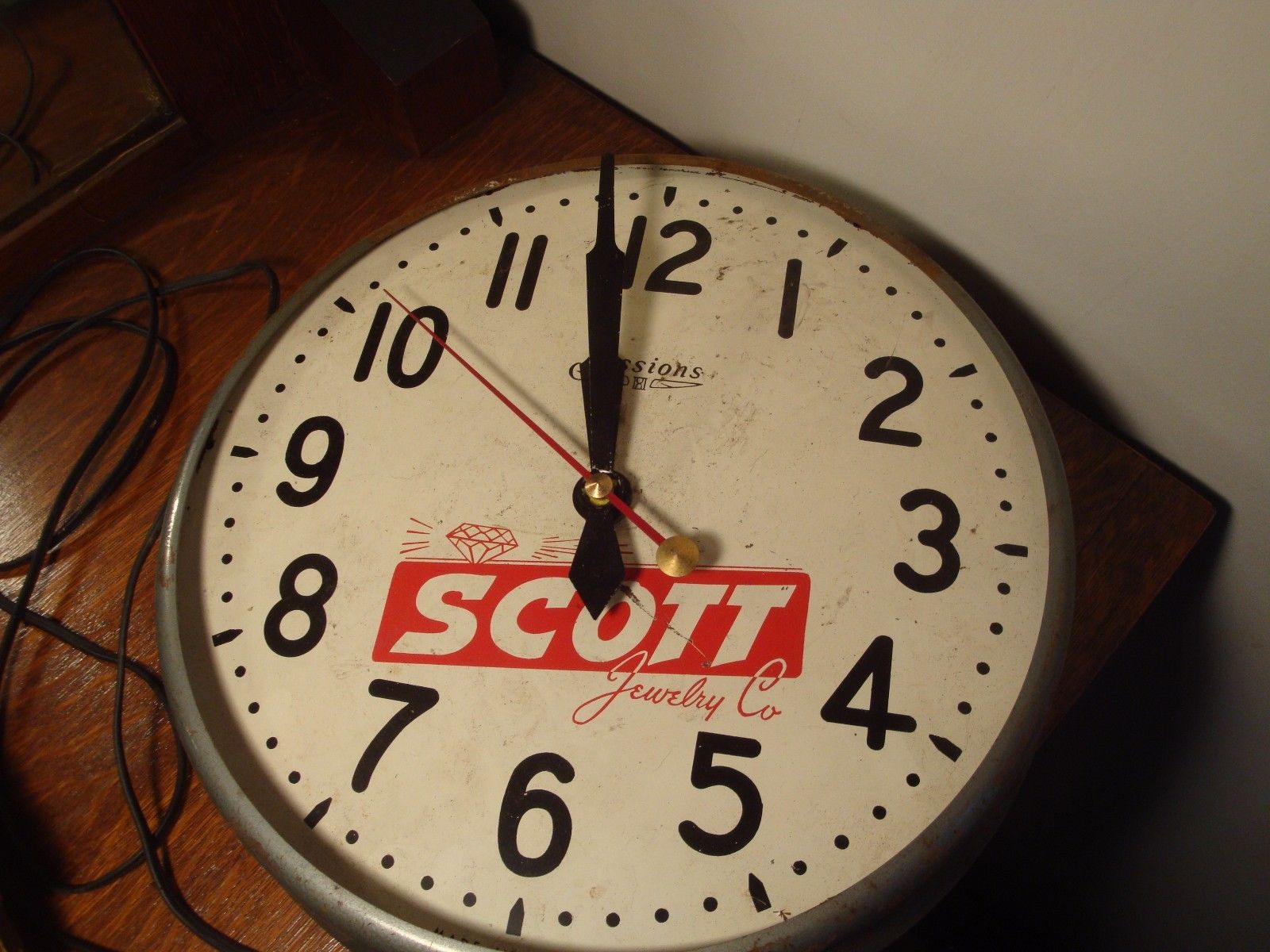 Title (ebay affiliate link): Vintage Scott's Jewelry 14" Metal Clock Sign - Sessions No Reserve
