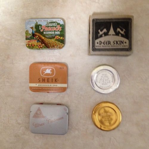 Vintage Condom Tin Collection of 6 - Peacocks-Sheik-Ultrex-Deer Skin-Gold-Coin