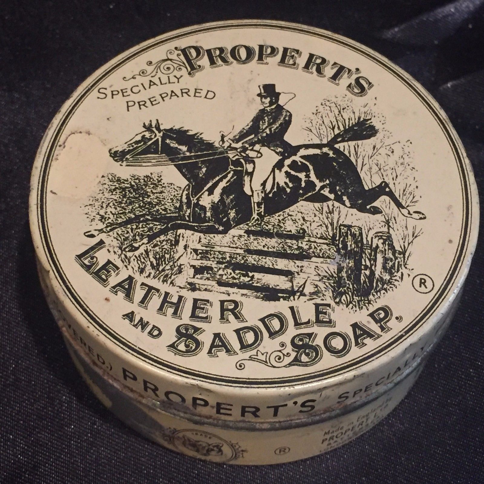 Title (ebay affiliate link): Antique Vintage Propert's Leather and Saddle Soap Advertising Tin London