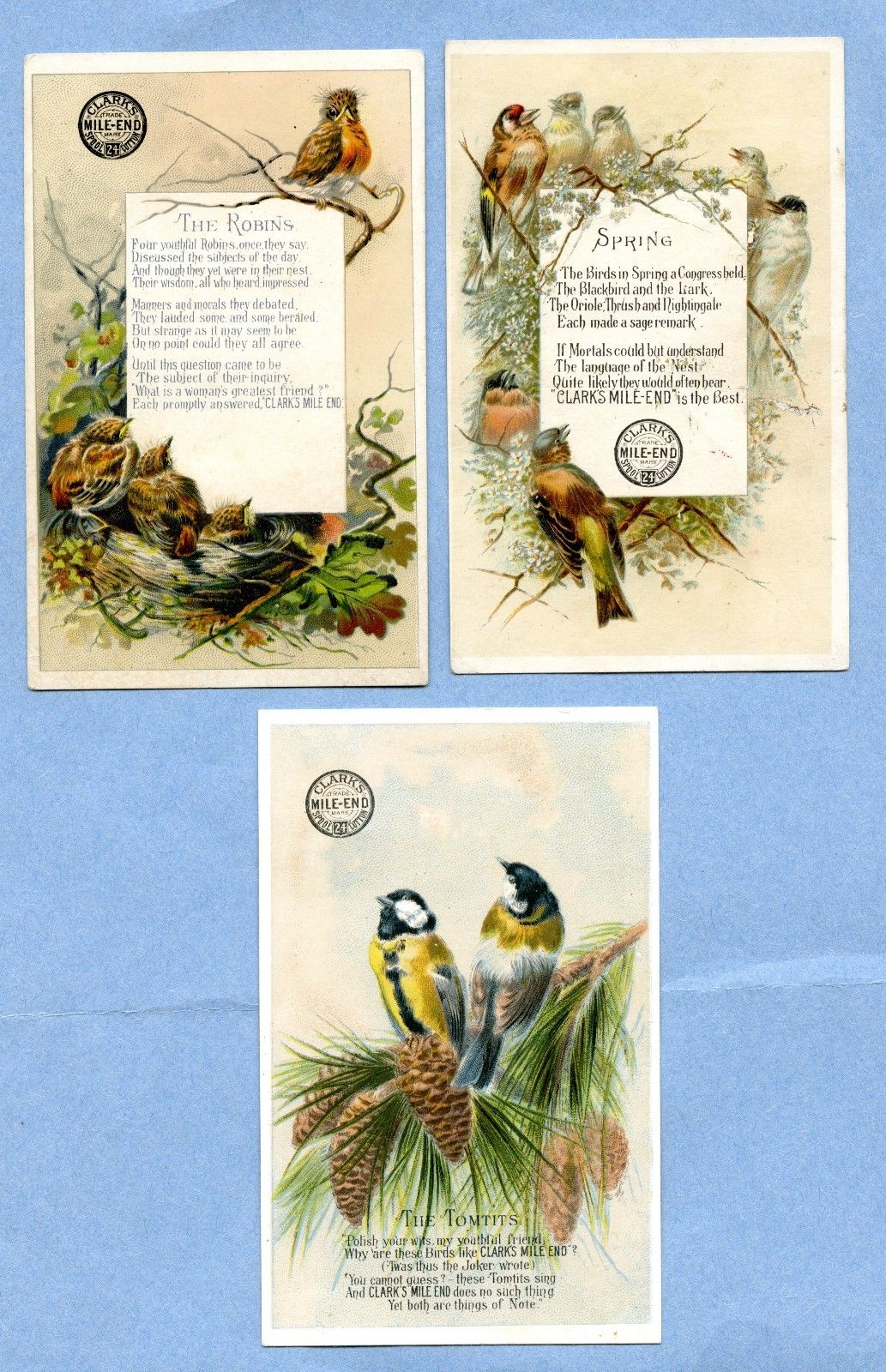 VICTORIAN TRADE CARD LOT OF 3 CLARK'S MILE-END SPOOL COTTON AGENT THOMAS RUSSELL