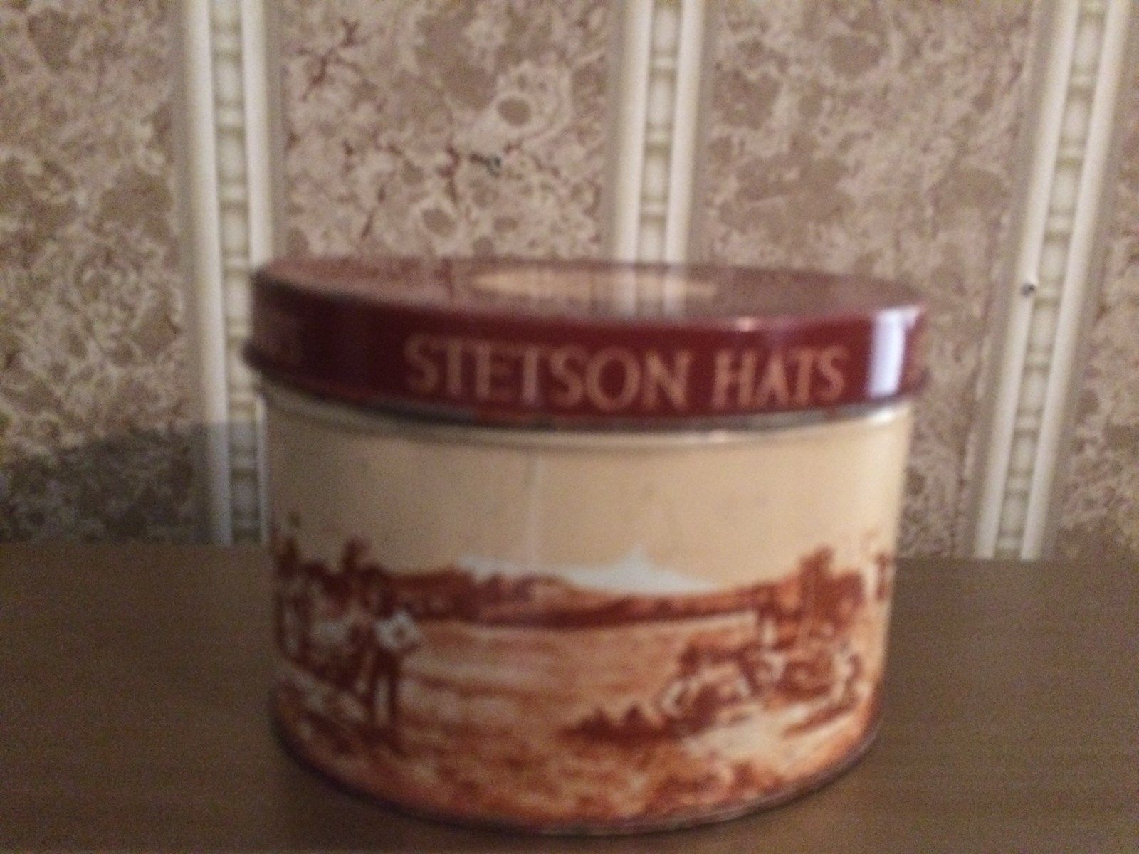 Title (ebay affiliate link): small VINTAGE ANTIQUE STETSON HATS ADVERTISING TIN cowboys horses L@@K