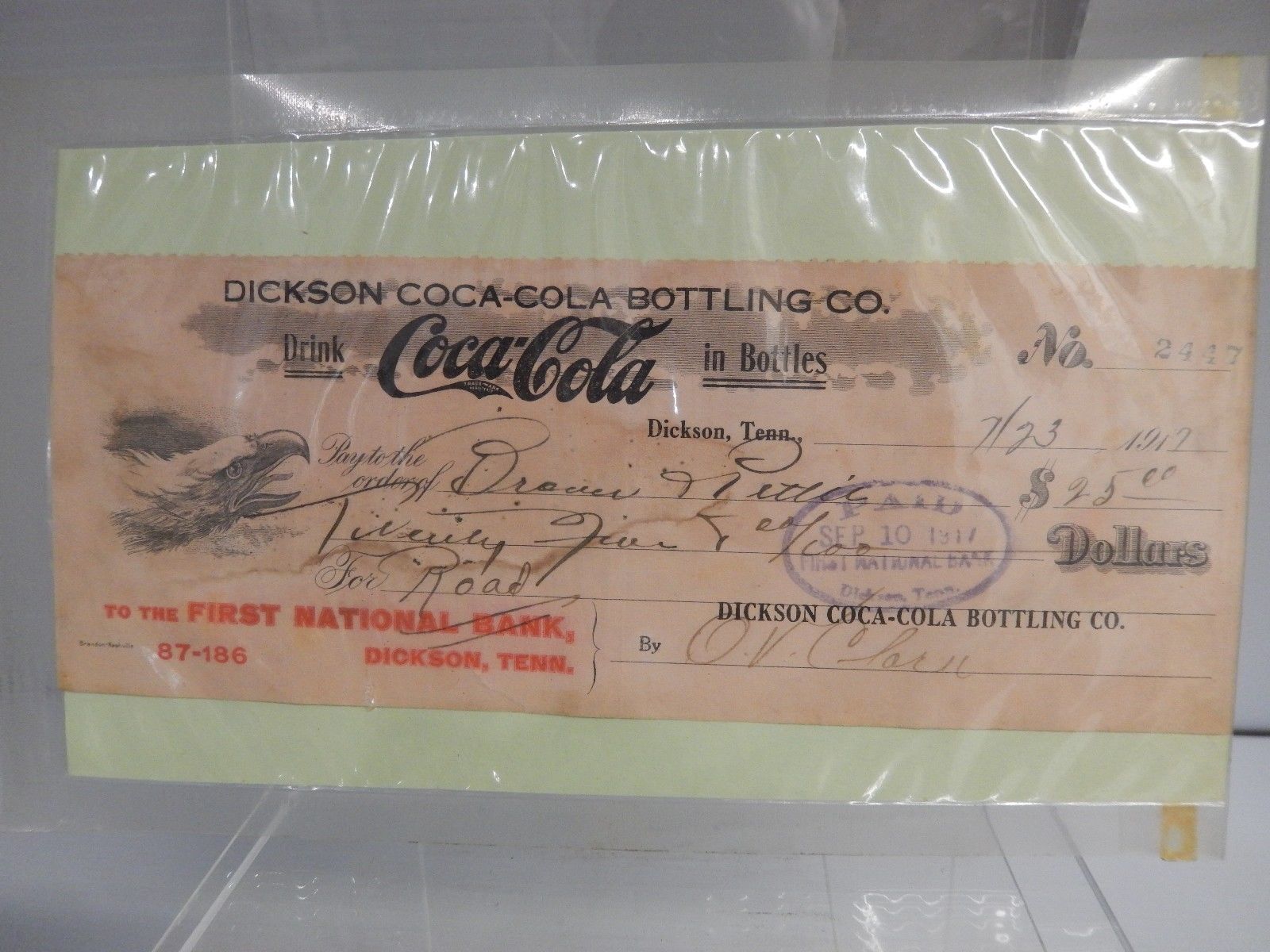 Title (ebay affiliate link): Orig 1917 COCA COLA BOTTLING COMPANY CHECK Dickson Tn