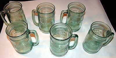 6 Vintage Coke Coca-Cola Green Glass Mugs