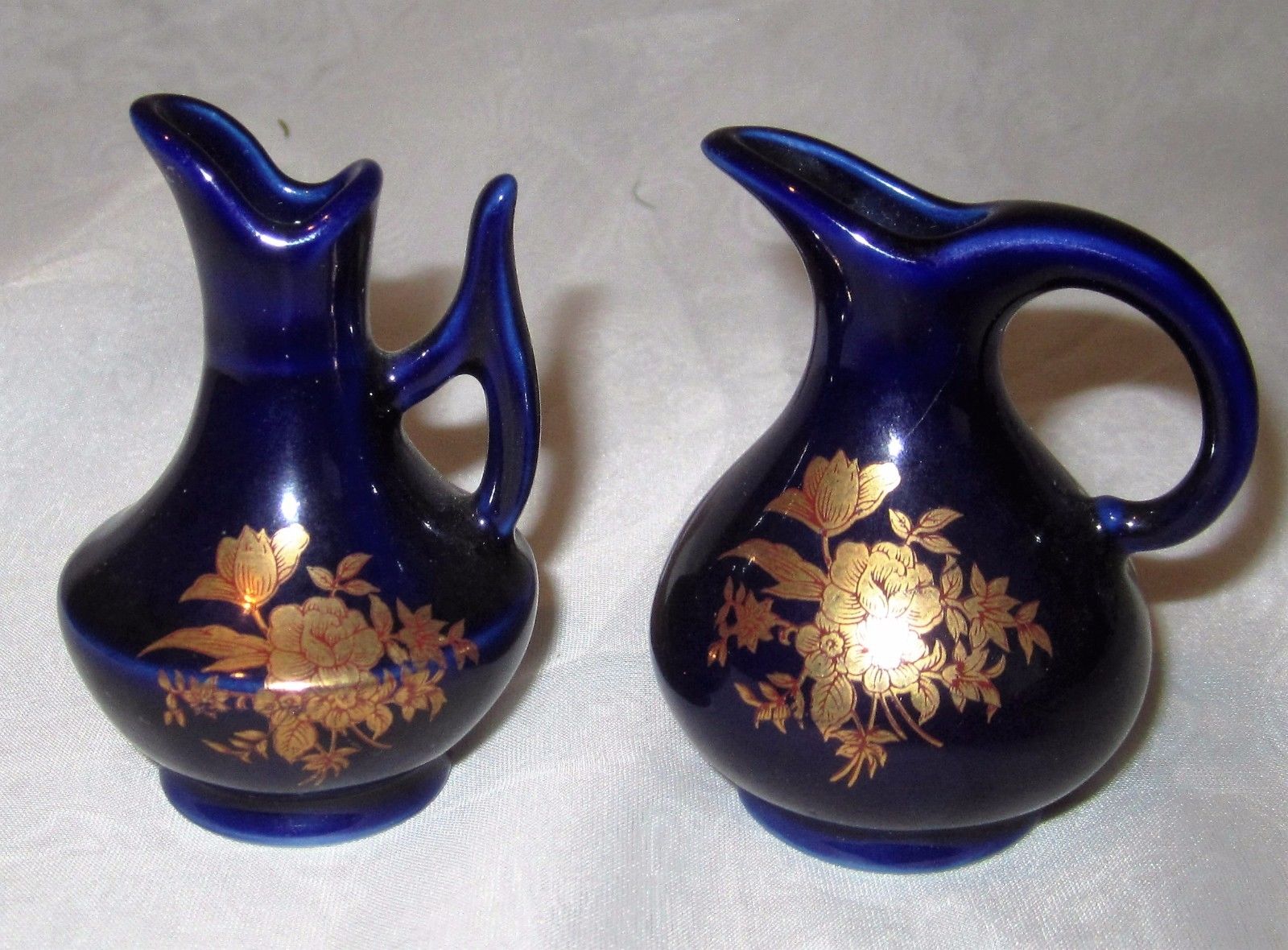Title (ebay affiliate link): Set of 2 - Vintage Cobalt Blue Miniature Pitchers With Gold Flowers - 3"
