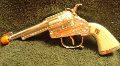 NICE OLDER DIECAST WESTERN-STYLE CAP GUN-"H" ON HANDLE