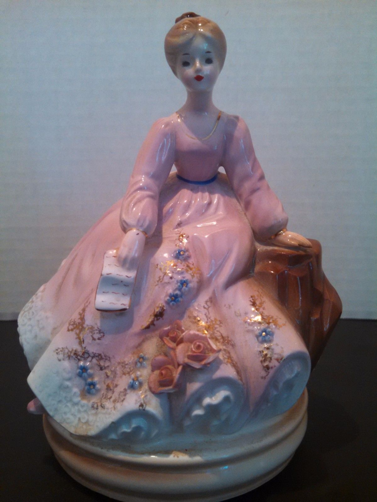 Title (ebay affiliate link): Josef Originals Vintage Porcelain Musical Girl Beautiful Pink Dress 6-1/2" tall
