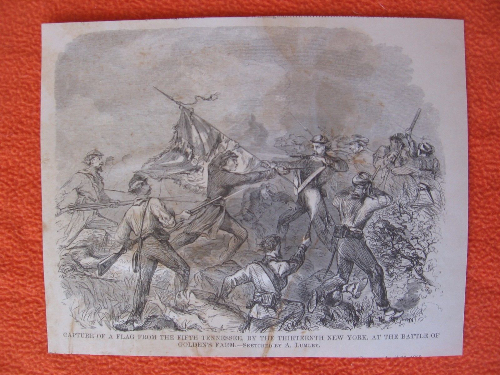 Title (ebay affiliate link): 1885 Civil War Print - Capture of 5th Tennessee Flag by 13th New York - FRAME IT