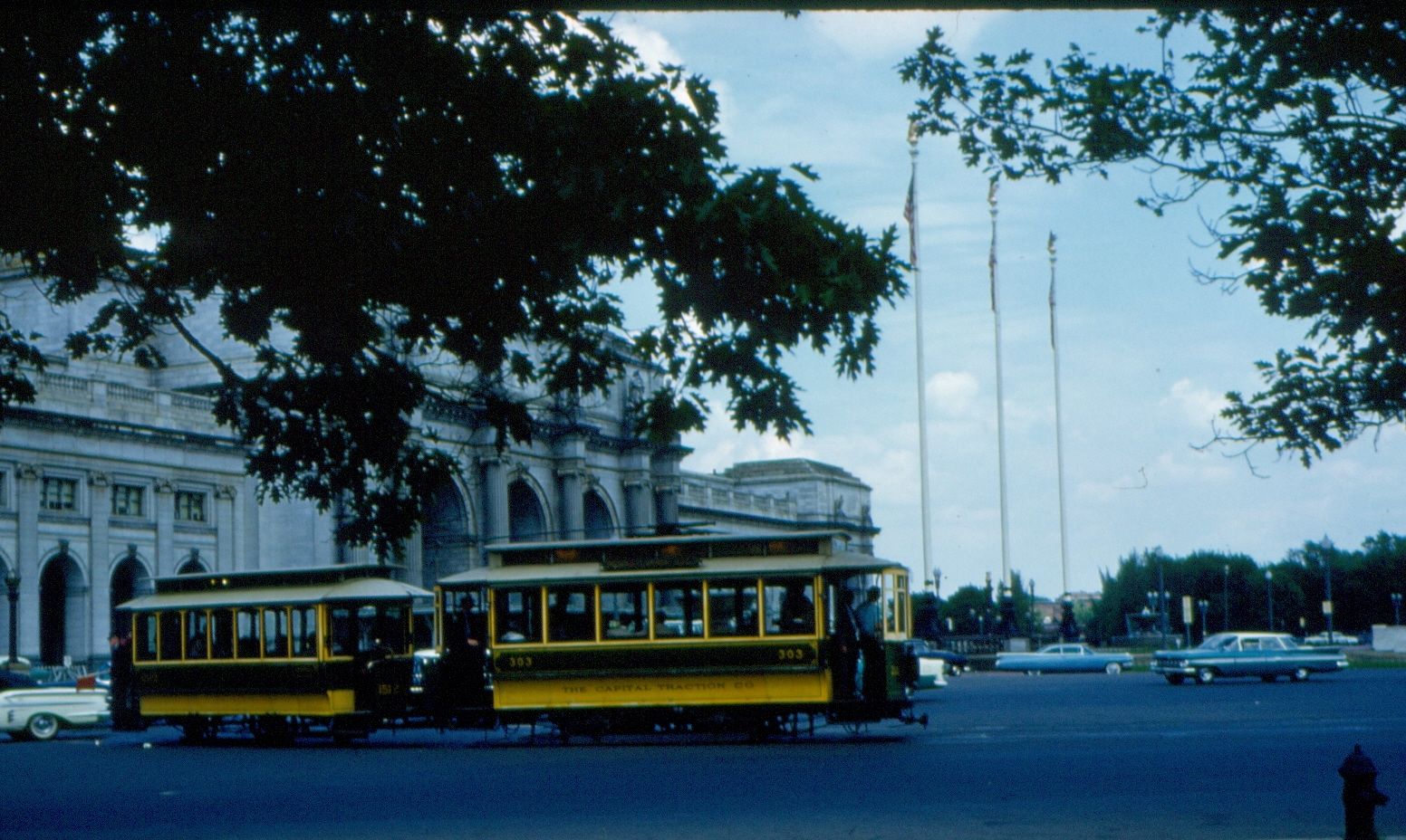 Title (ebay affiliate link): 35mm Orig Slide D.C. Transit Trolley #303 & Trailer #1512 Union Station Plaza