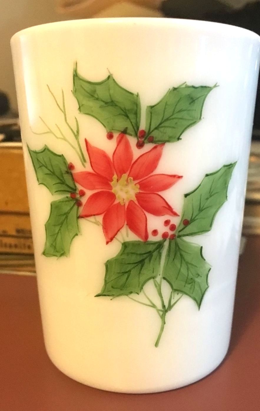 Title (ebay affiliate link): Westmoreland Milk Glass w/HP Holly Christmas 3.75" Flat Tumbler Hand Painted MG