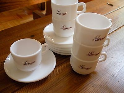 set 6 Vintage Arcopal France Milkglass stacking Espresso Cups & Saucers LAVAZZA