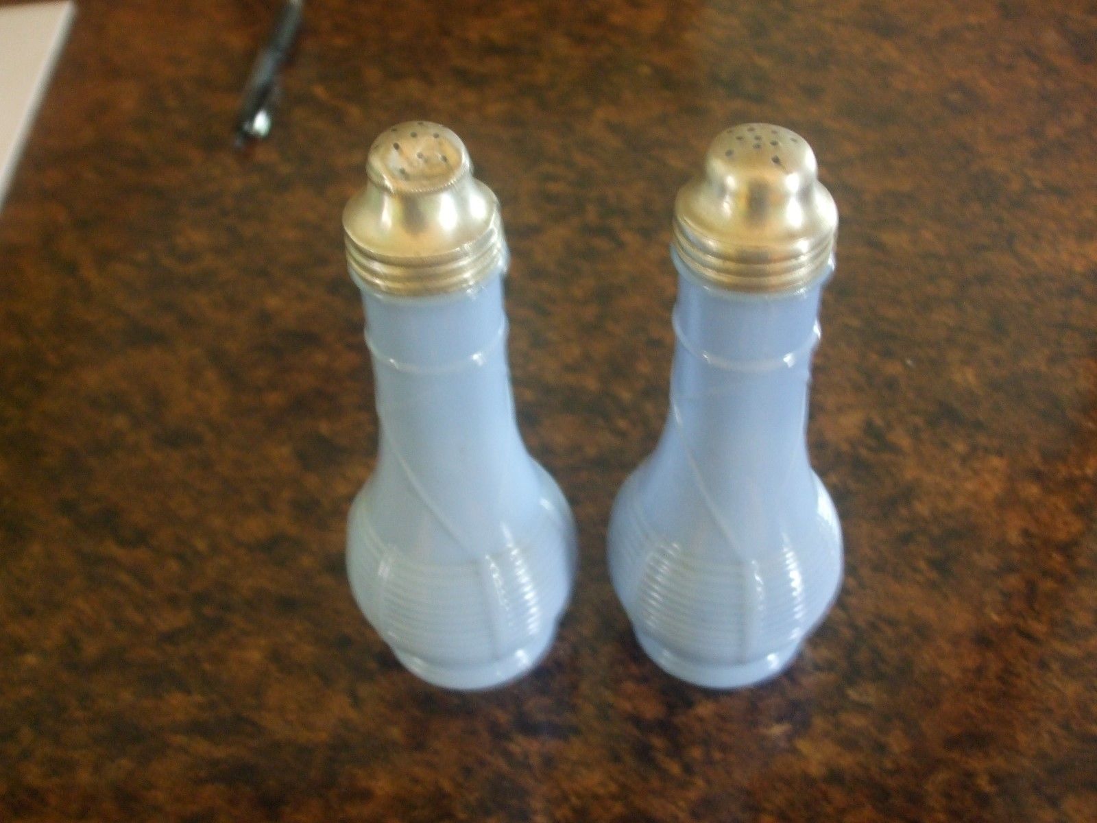 VINTAGE SALT AND PEPPER SHAKERS LIGHT BLUE MILK GLASS