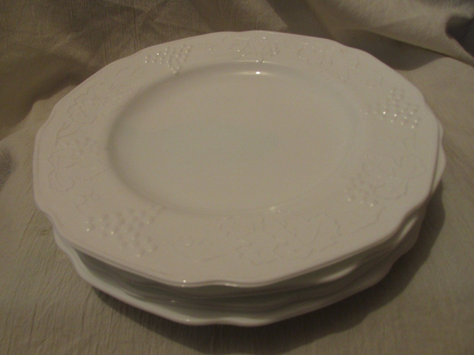 Title (ebay affiliate link): Four Vintage Indiana Glass Harvest Grape 10" Milk Glass Dinner Plates - Set#2