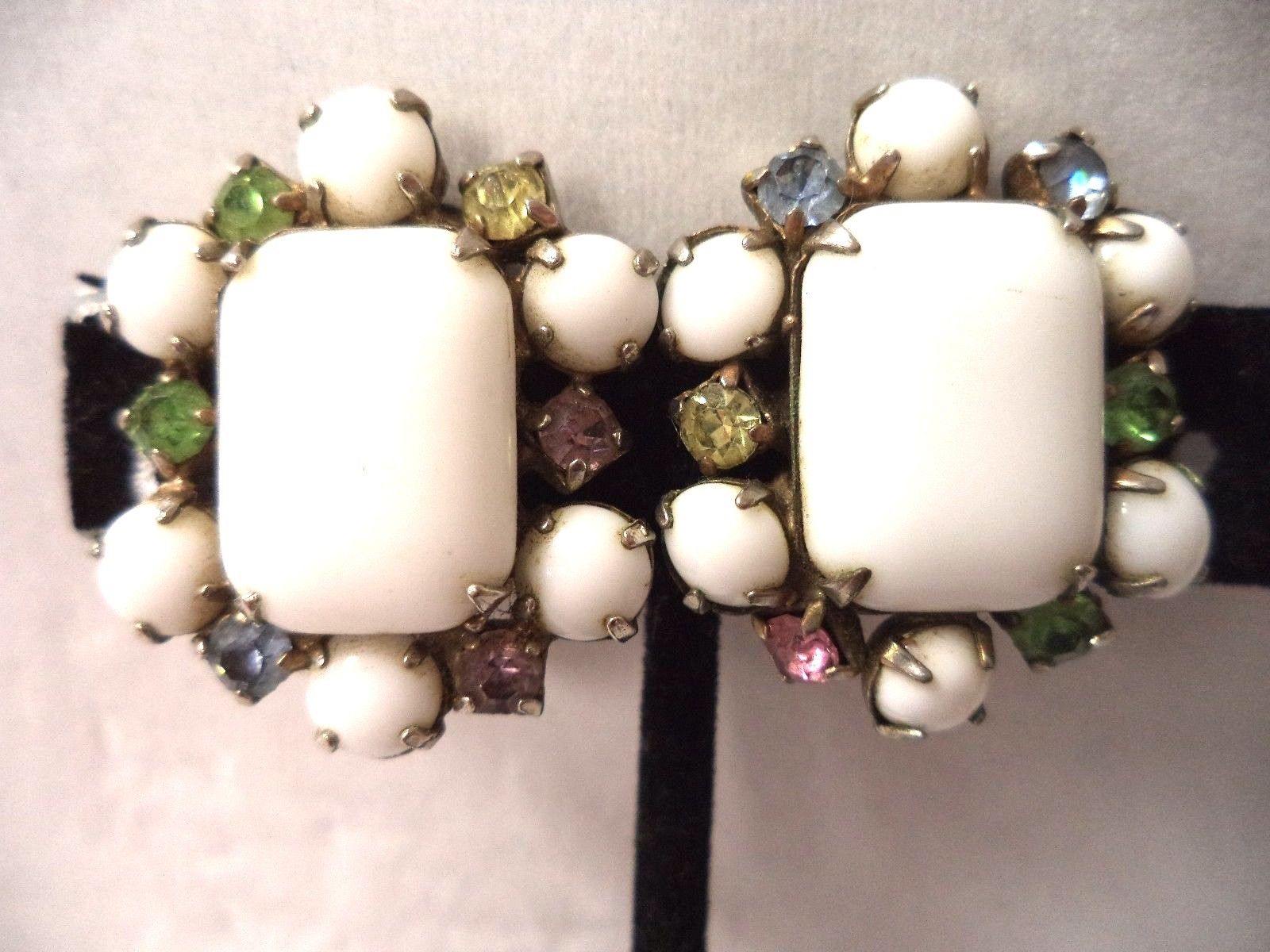 Title (ebay affiliate link): STUNNING VINTAGE ESTATE HIGH END RHINESTONE & MILK GLASS CLIP EARRINGS!!! G8914