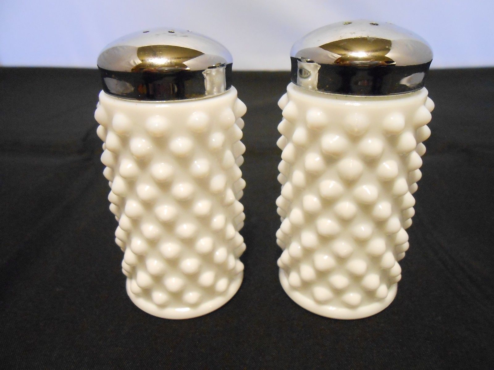 Title (ebay affiliate link): Vintage Fenton White Milk Glass Hobnail Salt & Pepper Shakers