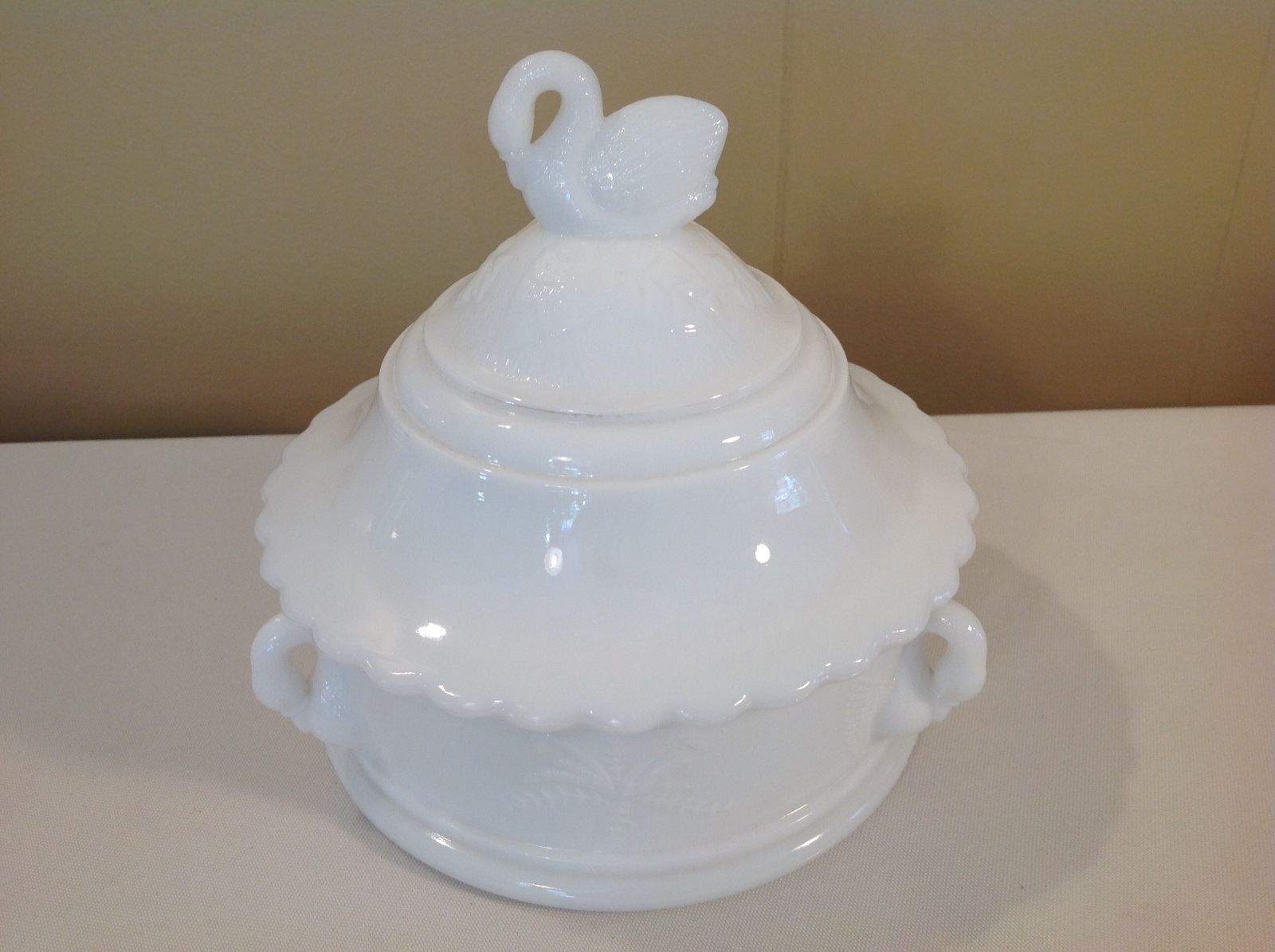 Title (ebay affiliate link): VTG Swan Milk Glass Covered Candy Trinket Dish Westmoreland