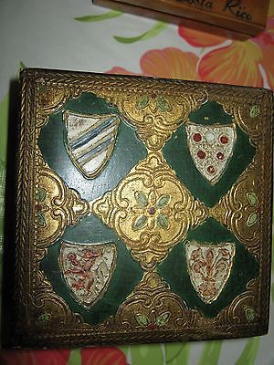 3.78" Italy? Florentine Tole Wood Gold Gilt Wood Collectible Hinged Trinket Box