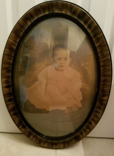 Title (ebay affiliate link): 23x16 Tiger Wood Oval Frame with Bubble Glass Vintage portrait Antique