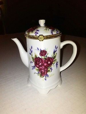 Title (ebay affiliate link): Teapot Trinket Box Purple Flowers Porcelain Mini Vintage Hinged Trinket Box