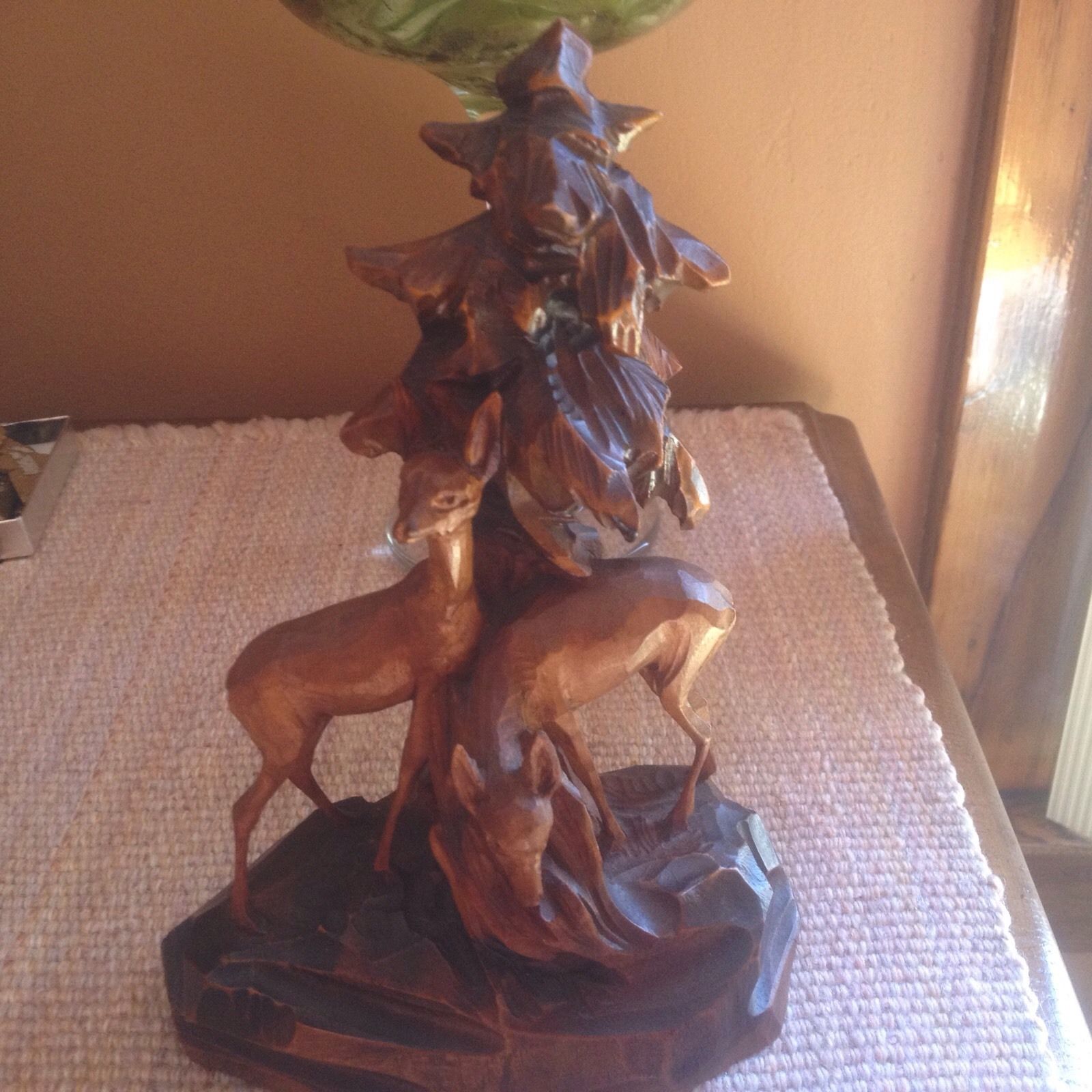 Title (ebay affiliate link): ANTIQUE 8'" BLACK FOREST MOUNTAIN GOATS ? DEER/ CARVED WOODEN SCULPTURE