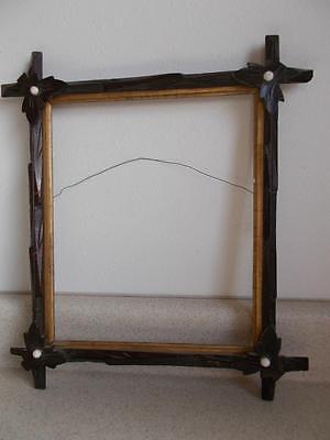 Title (ebay affiliate link): Frog eye wood picture frame Adirondack tramp art porcelain bead in leaf corners
