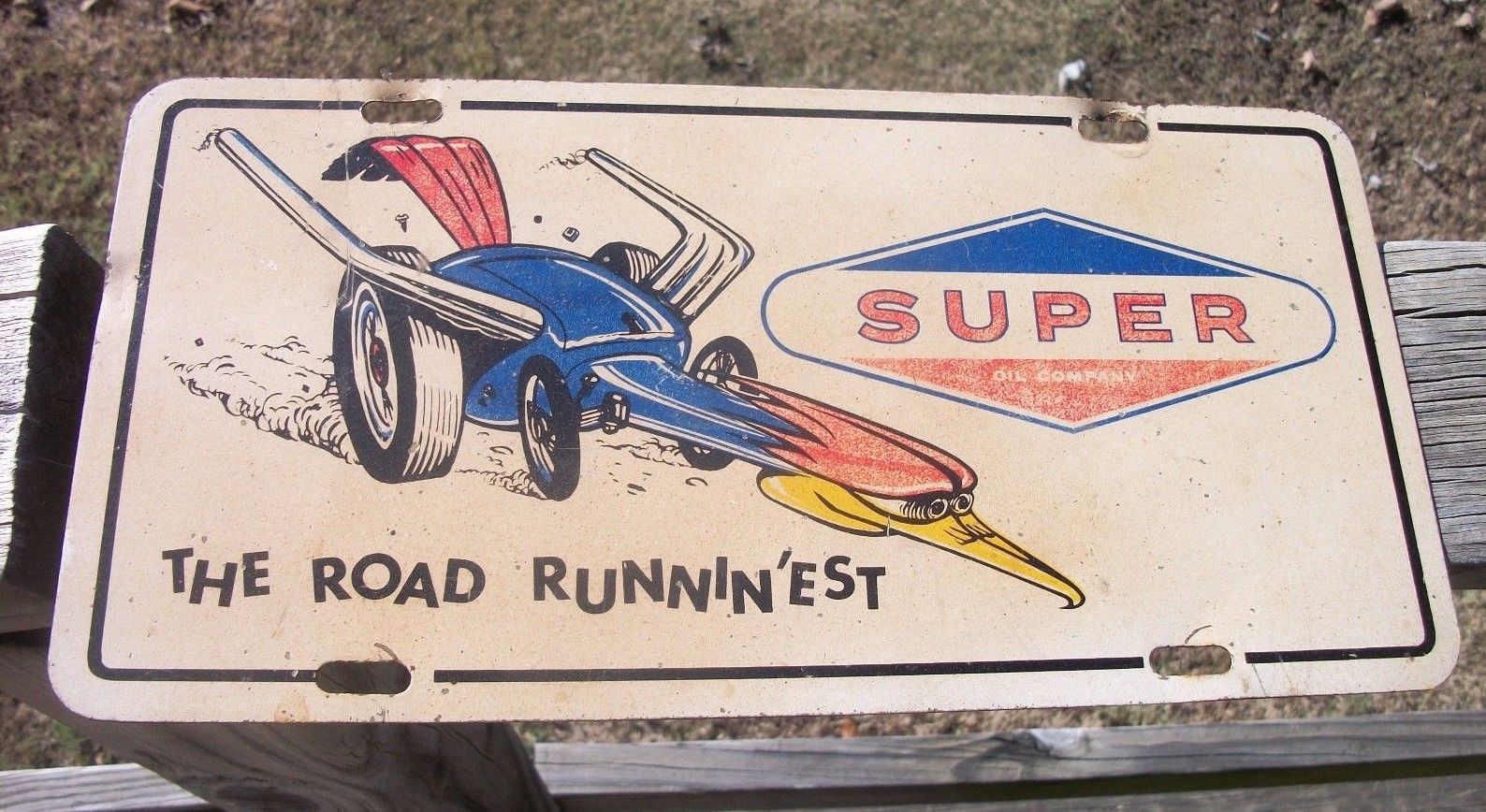 Title (ebay affiliate link): Rare 1960's *SUPER OIL COMPANY* "THE ROAD RUNNIN'EST" Advertising License Plate