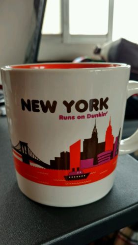 Title (ebay affiliate link): Dunkin Donuts New York City Mug 2012 White Brown Orange Purple Runs on Dunkin'