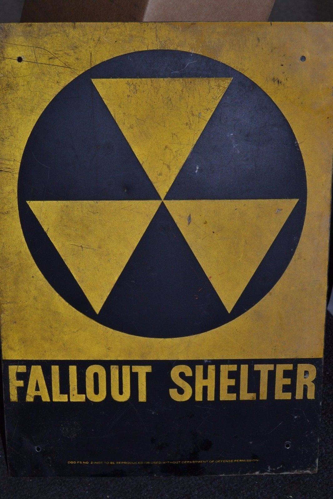 Title (ebay affiliate link): Vintage Fallout Shelter Sign With Wear From Age & Elements
