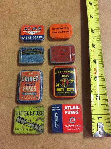 Title (ebay affiliate link): Vintage Auto Fuse, Valve Cores, Flint Tins Lot - 8 Total