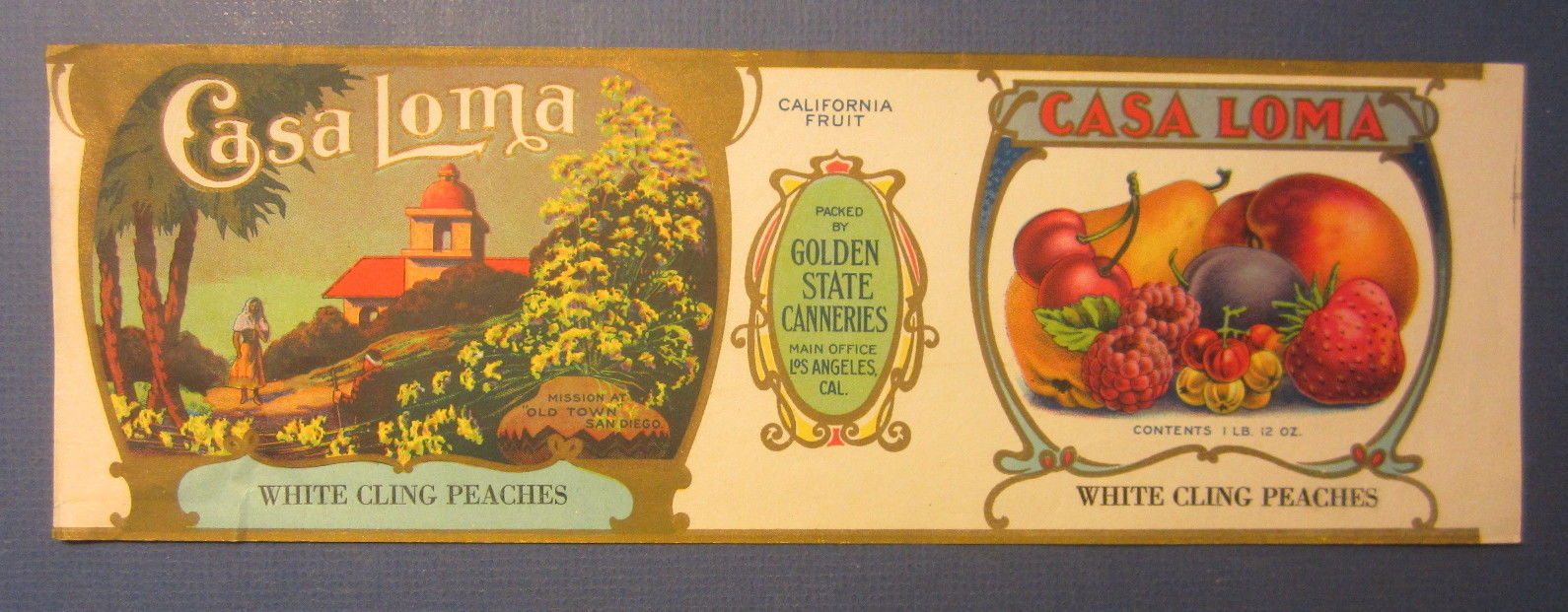Title (ebay affiliate link): Old Vintage c.1910 CASA LOMA Peaches CAN LABEL - SAN DIEGO Mission - Los Angeles