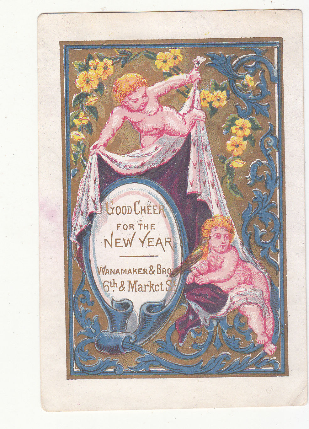 Wanamaker & Bros GOOD CHEER FOR NEW YEAR Naked Cupids Vict Card c1880s