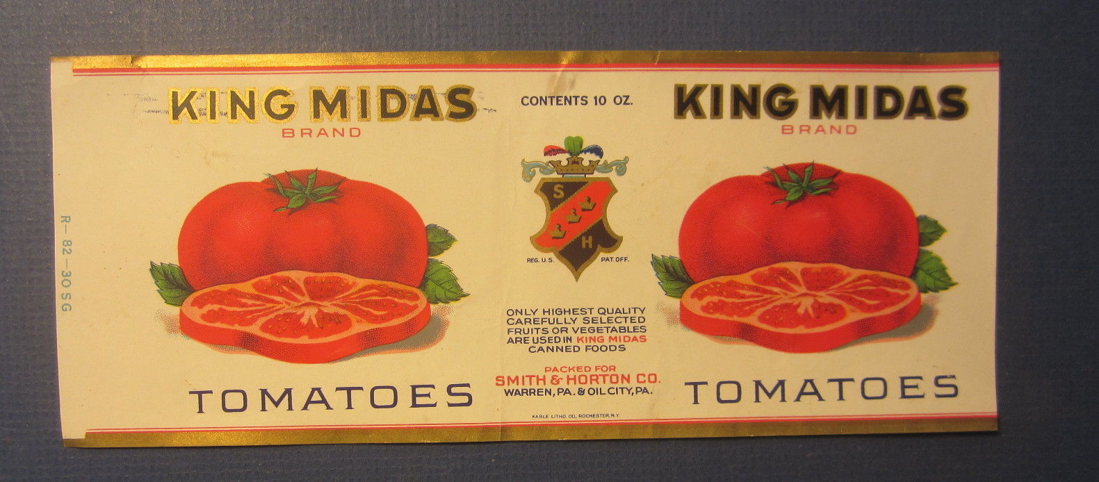 Old Vintage c.1930 - KING MIDAS - Tomatoes CAN LABEL - Warren / Oil City PA.
