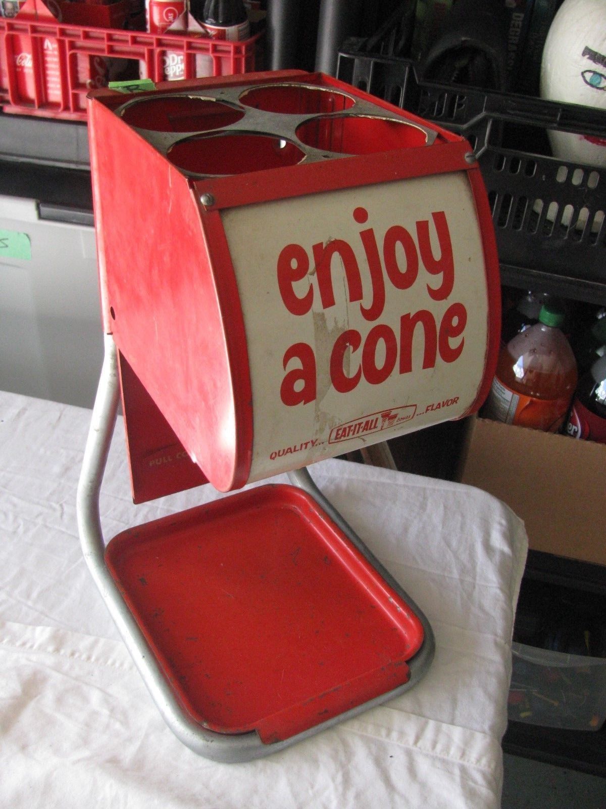 Title (ebay affiliate link): Enjoy a Cone - Eat-it-all - Ice Cream Cone display holder VINTAGE