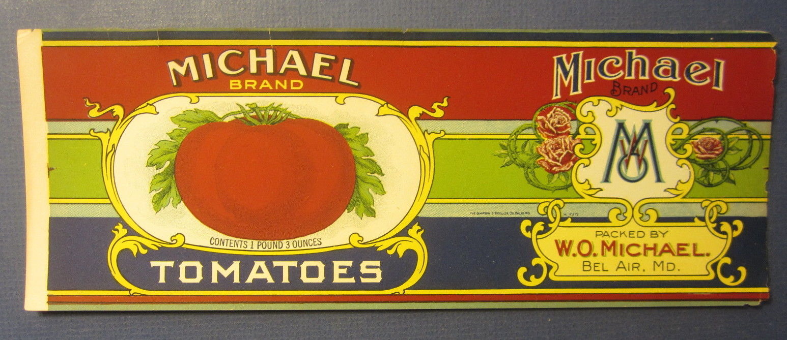 Title (ebay affiliate link): Old Vintage MICHAEL Brand Tomatoes - CAN LABEL - W.O. Michael - BEL AIR Maryland
